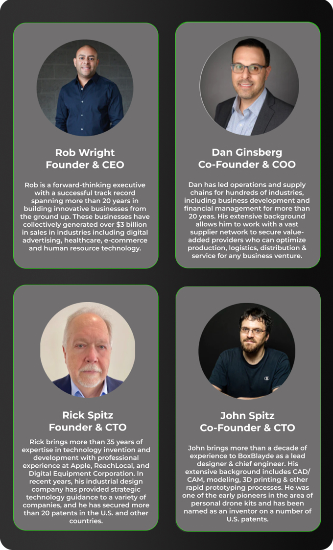Recognizing the need for design and manufacturing expertise, he turned to his former business partner, Rick Spitz, and Rick's son John Spitz (also Co-Founder of Boxblayde), who had successfully built a custom drone manufacturing business in New Hampshire. Their collaboration led to the formation of BoxBlayde.